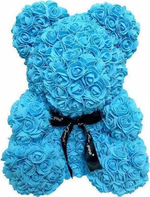 Αρκουδάκι χρώμα μπλέ 40 cm από τεχνητά τριαντάφυλλα