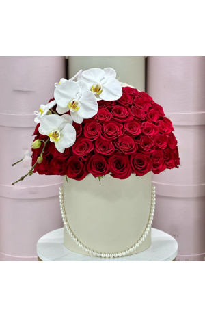 Τριαντάφυλλα σε βάση – Σύνθεση με Φρέσκα Λουλούδια